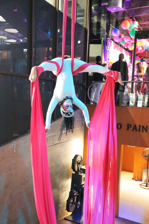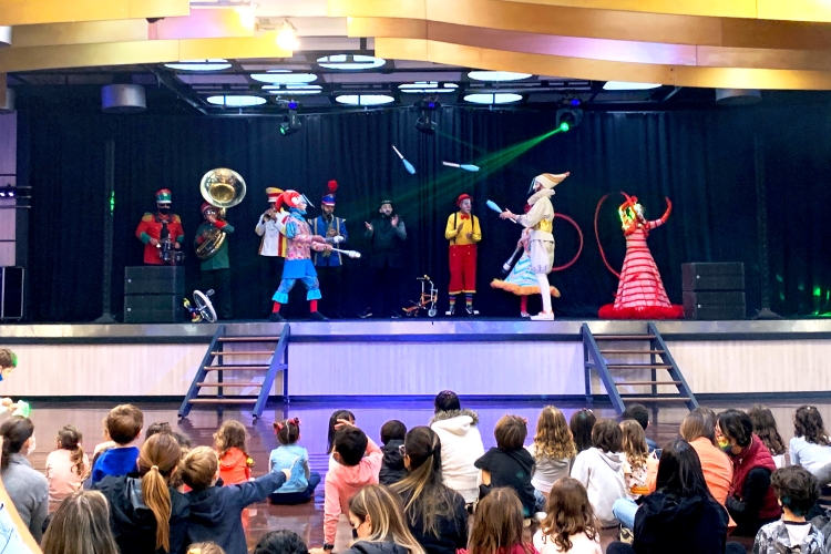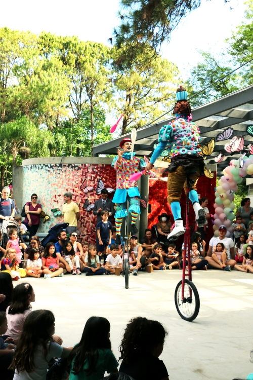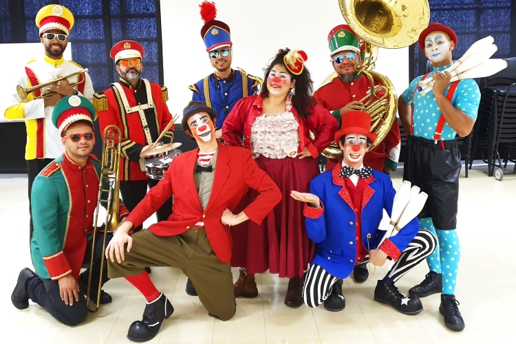 Nas apresentações números com monociclos, malabares, perna de pau, jumping stilt, diabolô, fita olímpica, bola de contato, mágica, tecido, argolas, acrobacias com liras e tecidos e pantomimas. A fanfarra compõe o grupo e conta com músicos performáticos, que tocam jazz, rock, mpb, músicas circenses e de desenho animado. No final da apresentação o grupo conta a história e demonstra a sonoridade de cada instrumento de forma lúdica e didática.